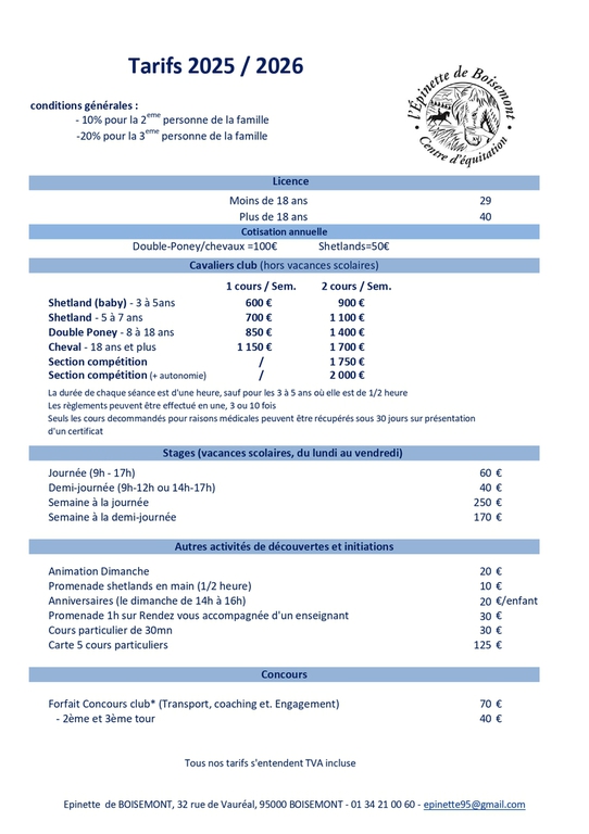 Il y a forcément une activité équestre qui correspond à vos envies ou celles de vos enfants ! A seulement 5 minutes de Cergy, nous vous accueillons au sein de nos nouvelles installations, dans un cadre exceptionnel et une ambiance chaleureuse et conviviale.